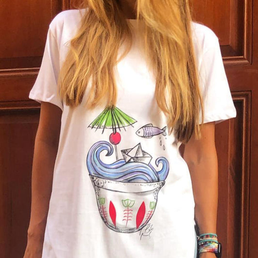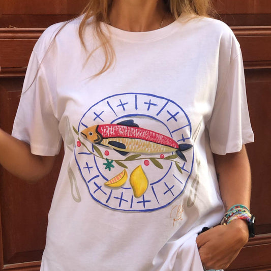 Fish plate hand painted T-shirt